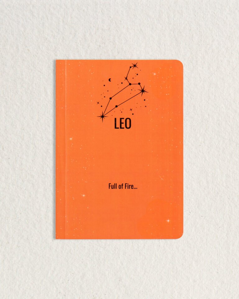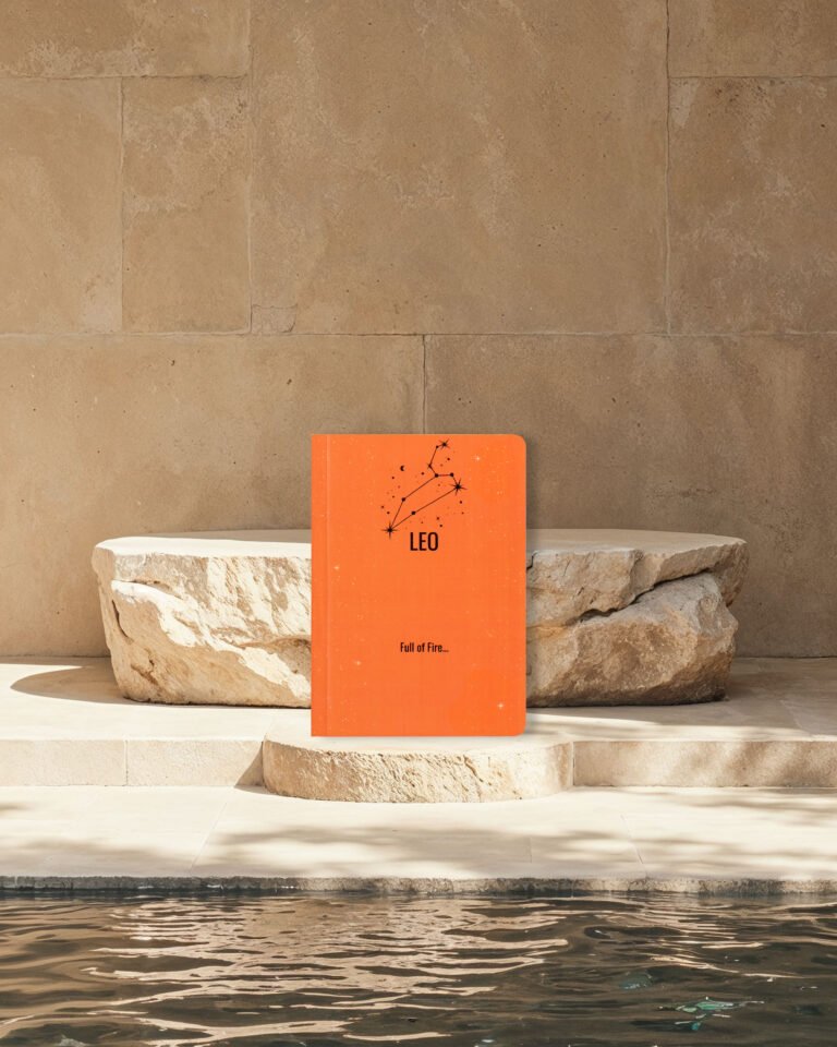 Celebrate your radiant energy with the Leo journal. This notebook features an intense, star-dusted orange background, perfectly suiting the fire sign known for its warmth and bravery. The cover phrase, “Full of Fire,” pays homage to the unstoppable spirit and charismatic heart of the Leo.