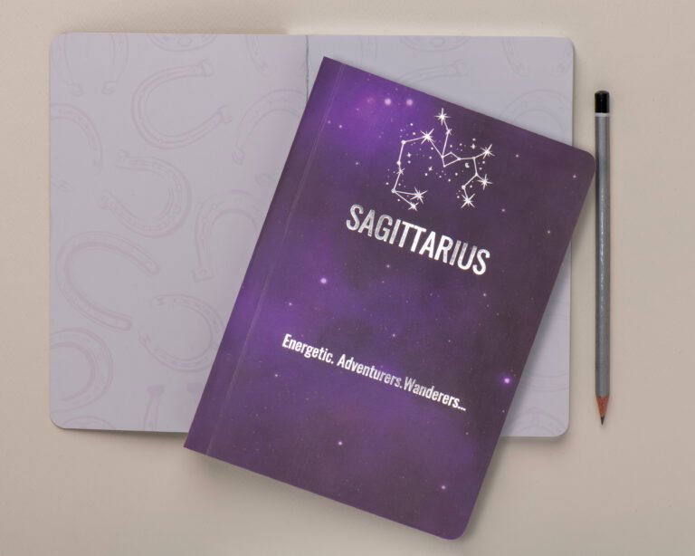 Fuel your wanderlust with a journal that matches your fiery spirit. The Sagittarius notebook features a stunning purple galaxy design that evokes the mystery of the cosmos. Labeled “Energetic. Adventurers. Wanderers,” it is built for those who are always on the move. Use it to jot down travel itineraries, philosophical musings, or your boldest goals. It is the ultimate accessory for the archer who is always aiming for the stars.